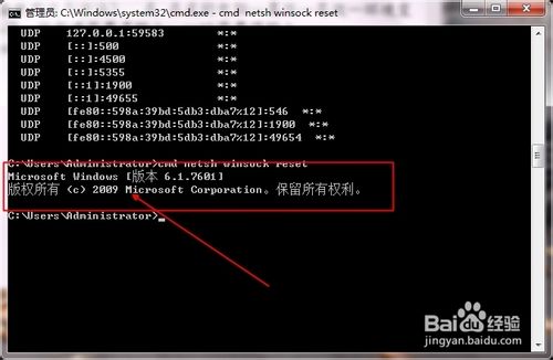 5、再一次輸入第一條命令就ok了。重啟電腦Google和Ie就可以上網了
