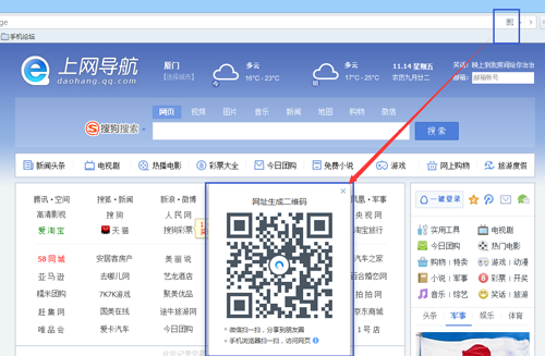 1、首先點擊地址欄右端的二維碼圖標: