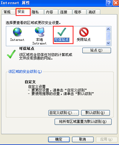 2、在彈出的頁面 中選擇安全,然后在點擊可信任站點-站點。