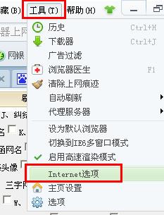 1、打開瀏覽器的工具欄目,選擇Internet選項。