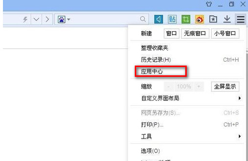 第三步:菜單-應(yīng)用中心,打開(kāi)百度瀏覽器應(yīng)用中心。