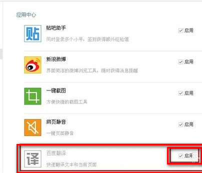 第四步:找到百度翻譯(快速翻譯文本和當(dāng)前頁(yè)面)并點(diǎn)啟用