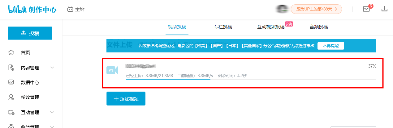 6、提交成功后,可以在【內容管理】-【稿件管理】中查看視頻審核進度。
