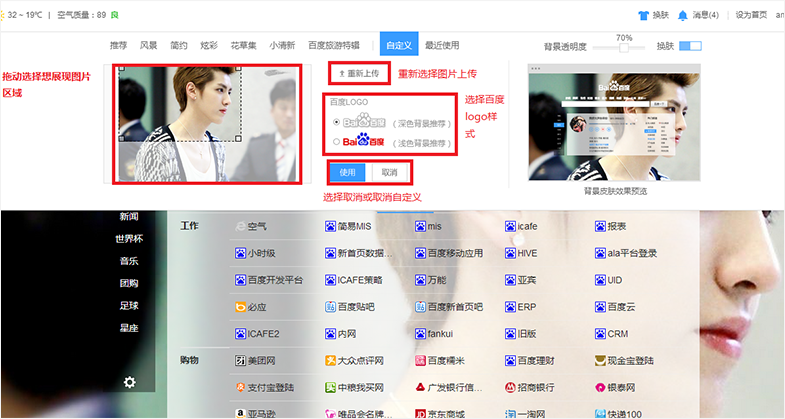 根據提示選擇拖動想要展現圖片區域,還能選擇喜歡的百度Logo樣式陪襯!
