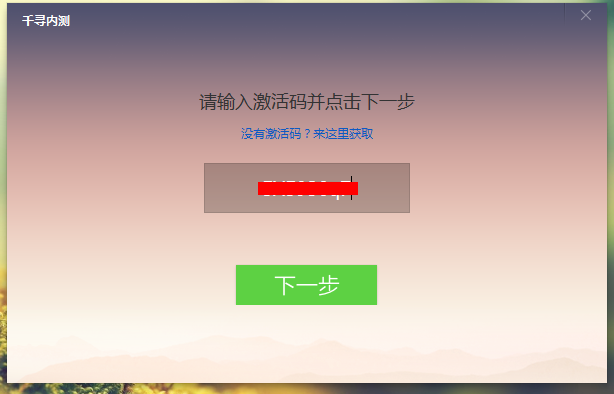因?yàn)槭莾?nèi)側(cè)版本,所以需要輸入激活碼,激活碼可以通過訪問千尋瀏覽器主頁(WWW.QXLLQ.com)自助獲取。好的,輸入激活碼后我們點(diǎn)擊下一步