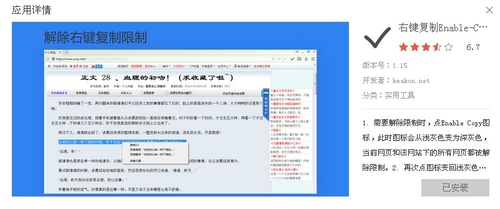 NO.1右鍵復制,它的最大特色就是打破了傳統限制。只能閱覽、不能下載,連復制都不被允許的時代將一去不復返。通過“右鍵復制”,論文期刊想拷就拷,圖書小說想下就下,網頁內容徹底零門檻Download。
