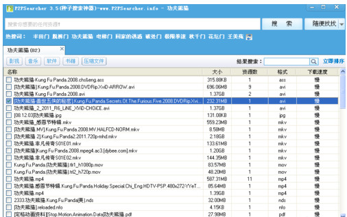 p2psearcher(種子搜索神器)是一款小巧方便的的電驢資源搜索軟件,基于先進(jìn)的P2P搜索技術(shù),可在瞬間搜遍全球ED2k網(wǎng)絡(luò)資源,簡(jiǎn)單便捷的搜索到ED2K網(wǎng)絡(luò)上共享的海量影音娛樂(lè),學(xué)習(xí)資料等資源。搜索出來(lái)的資源可以用電驢或者迅雷下載工具下載,非常方便。