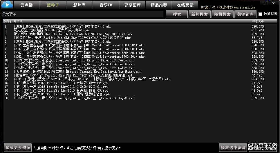首先、先打開BT盒子種子搜索神器,搜索你需要的觀看的電影,如:環(huán)太平洋,搜索結(jié)果如圖1: