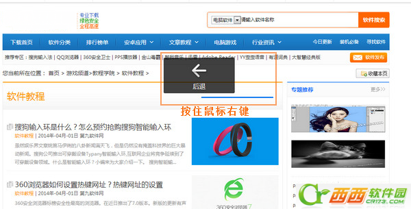 鼠標手勢設置完后,進行瀏覽網頁,按著鼠標的右鍵不放,劃出手勢的圖案,那么瀏覽器就會顯示手勢所實現的效果了。