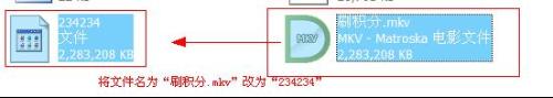 4、此時下載下來的文件有兩個,“刷積分.qud.cfg”文件和“刷積分.mkv.tdl”文件,將tdl文件的文件名復制下來,然后將這個tdl文件刪除,(注意一定要將文件類型的擴展名一并復制,如“刷積分.mkv.tdl”,可以事先設置為“顯示已知文件類型的擴展名”,具體看第7步),將事先下載好的文件(已經改為“234234”的那個文件,詳見第2步)更名為剛剛復制的文件名“刷積分.mkv.tdl”。