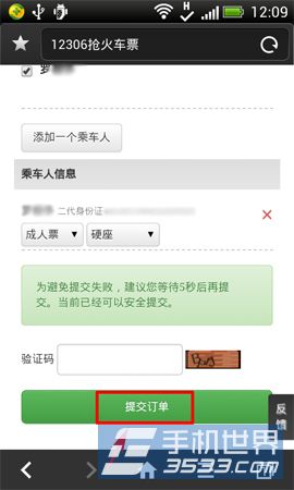 2)在查詢成功后,點擊還有的票數,然后編輯好自己的個人相關信息,在輸入驗證碼,就按“提交訂單”按鍵。