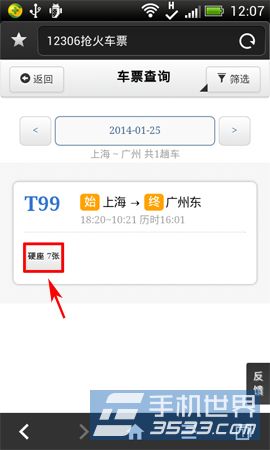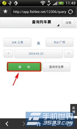 1)首先打開獵豹瀏覽器搶票專版,進入首頁,點擊“火車票”按鍵,在進入查詢界面,輸入地區后,在按“查詢”按鍵。