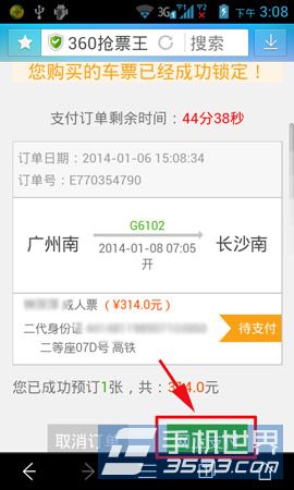 3)輸入乘客信息后點擊“提交訂單”,確定無誤最后點擊“網上支付”。
