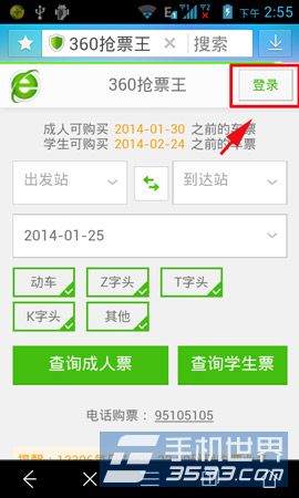 1)首先下載并安裝360搶票神器,然后點擊首頁的“360搶票王”,點擊右上角的登錄,登錄你的“12306”帳號。