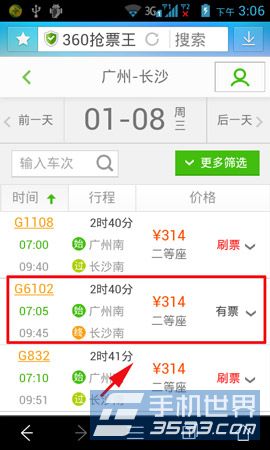 3)點擊購買后,找到你要的班次和席別,點擊“購買”。