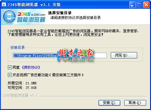 2345智能瀏覽器大小僅僅6M多,下載安裝速度確實很快,也不占內(nèi)存。新版的3.1還加入了開啟視頻廣告攔截功能,當然您可以選擇安裝。