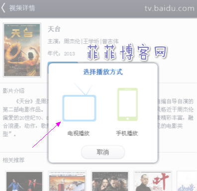 4)綁定成功后,就可以在手機上選擇想看的影視劇,播放時選擇推送到“電視播放”即可。