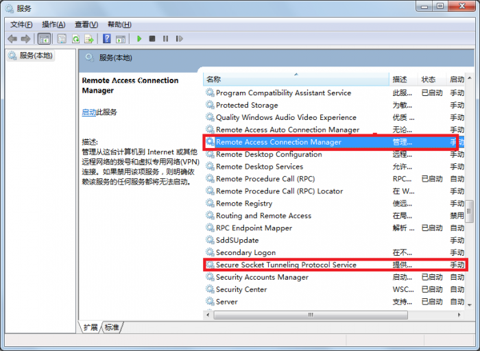 問題原因:系統服務remoteaccess connection manager、secure socket tunneling protocol service和telephony沒開,多被360關閉