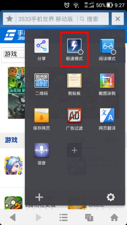 3)UC瀏覽器極速模式開啟。(如下圖所示)