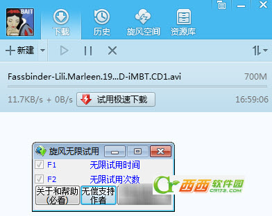 試用QQ旋風(fēng)無限試用修改器可以輕輕松松的讓你破解qq旋風(fēng)極速下載,讓你的下載速度得到飛躍一般的提升!即便是很難下動(dòng)的BT種子或者電驢資源也能獲得流暢的下載體驗(yàn)。
