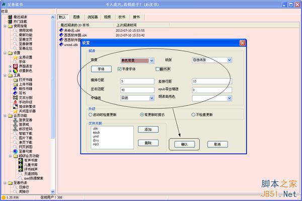 第一次運行程序,會提示你設置 閱讀習慣,設置背景及字體,一般的話,默認就行