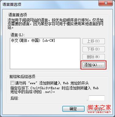 3. 在 [語言首選項] 視窗中,點擊 [添加]。