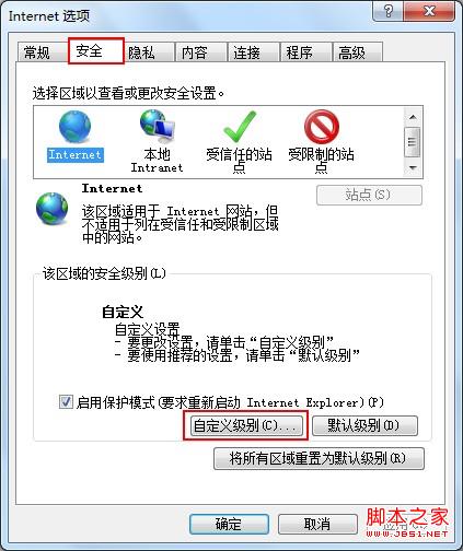 2. 切換到 [安全] 標簽頁,單擊 [自定義級別]。