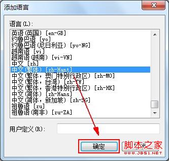 4. 在 [添加語言] 中,從列表中選取語言,再單擊 [確定]。