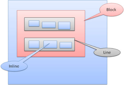 block一個挨著一個垂直格式化,inline則在水平方向上格式化。