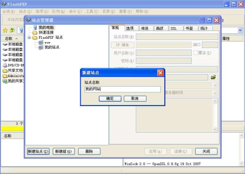 點擊“新建站點”按鈕,在新出的窗口輸入網站名稱,比如輸入“我的網站”,點擊確定,如下圖: