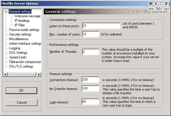 下面的是超時設置,自上至下分別為:連接超時、傳輸空閑超時、登入超時。單位為秒。