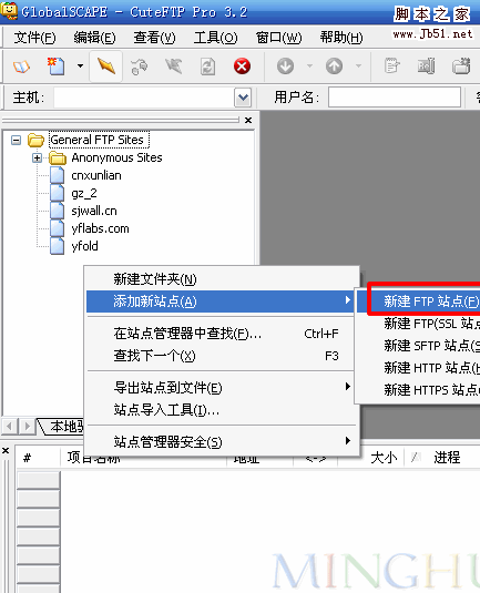 2. 點(diǎn)擊右鍵,新建FTP站點(diǎn):
