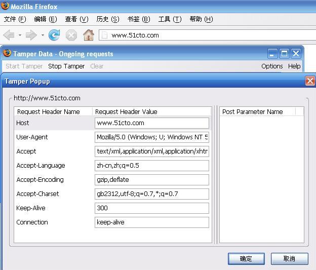 點擊 Tamper Data 主窗口上的“Start Tamper”,開啟對 HTTP 請求的截取。