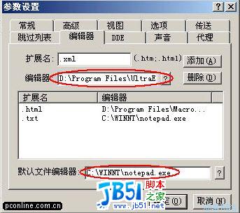 有時在上傳的過程中我們也許對文件臨時再做一些改動,在這里就可以針對某一種類型的文件設置一個對應的編輯器。首先寫好擴展名,然后再針對這個擴展名選擇一個相應的編輯器。然后掭加到列表中即可。
