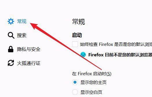 3、這時會打開Firefox瀏覽器的選項窗口,點擊左側邊欄的“常規”選項卡