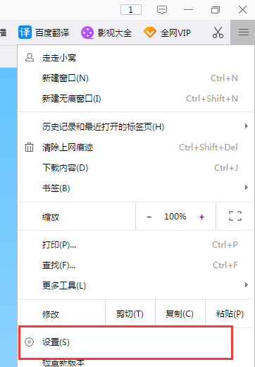 2、在下拉菜單中選擇設置菜單,如下圖所示