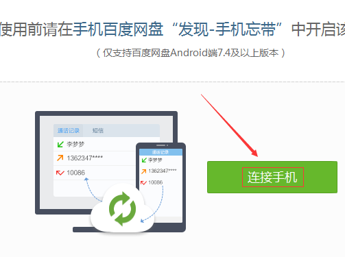 3、進入手機忘帶頁面,我們可以找到“連接手機”按鈕,然后點擊連接就可以了。