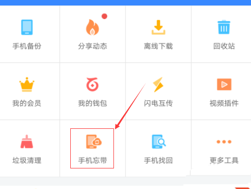 2、在功能寶箱頁面我們找到“手機忘帶”并點擊進入。