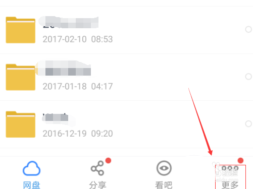 2、登錄手機端百度云盤以后,在百度云盤首頁最下面我們找到“更多”并點擊進去。