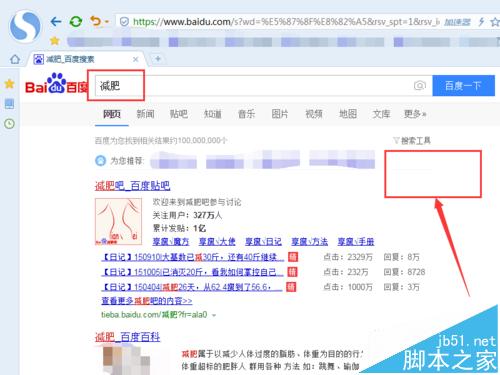6、再次搜索減肥這個關鍵詞時我們就可以看到搜索結果中已經沒有推廣鏈接了。