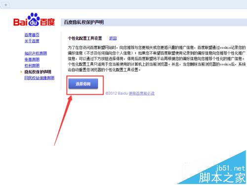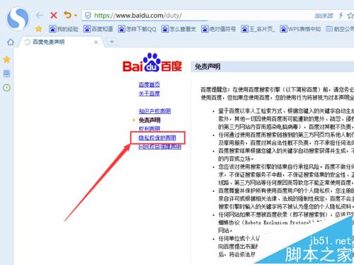 3、接下來點擊頁面左側的“隱私權保護聲明”選項。
