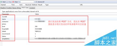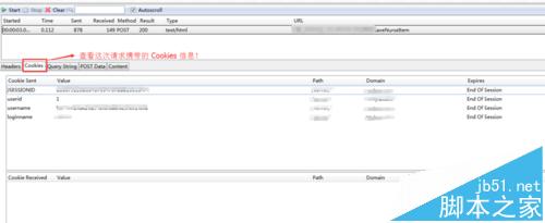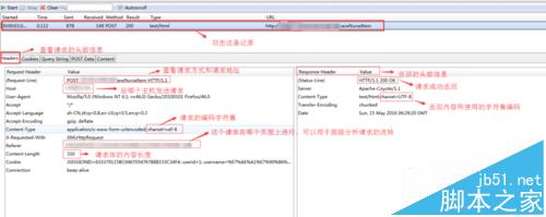 雙擊在HttpFox操作臺中出現的那條記錄,這樣我們就可以在其下方查看這條記錄的具體信息了,包括 頭部信息,Cookies,請求參數,POST參數 和 返回信息!
