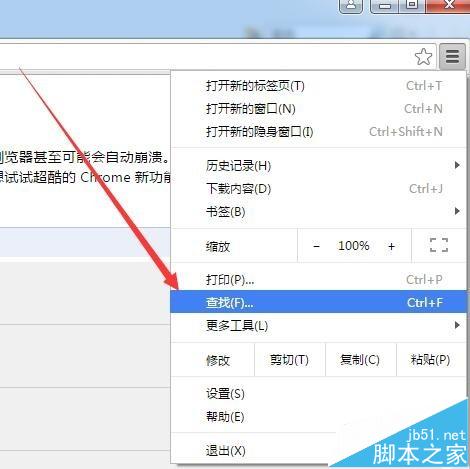 3、由于chrome瀏覽器的設置項比較多,我們點擊右側的“設置”按鈕,然后在彈出的菜單中點擊“查找 ”菜單