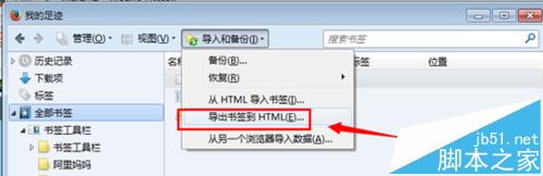 3、出現(xiàn)的列表中選擇“導(dǎo)出書簽到HTML”既是把書簽保留成一個html文件呢