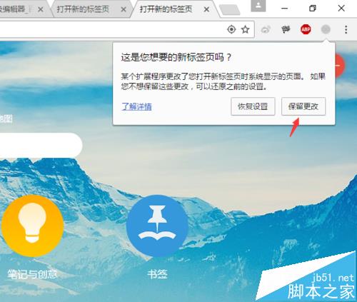 7、添加以后會自動彈出一個新建的標簽頁,然后會有如下提醒,選擇【保留更改即可】