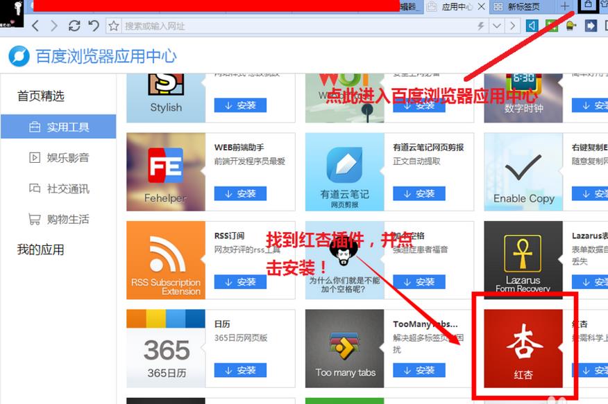 百度瀏覽器怎么安裝并使用紅杏插件