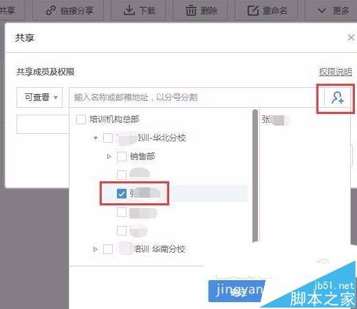2、點擊右邊的+號,選擇需要設置共享權限的人員。