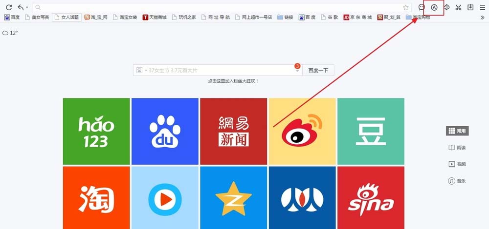 1、打開百度瀏覽器后點擊右上方的應用中心(圓里面大寫A)