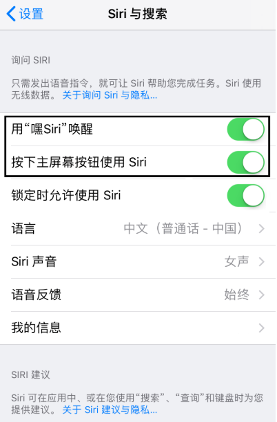 雖然很多人不習慣使用Siri,但是它會一直在后臺運行,消耗電量,小編在此建議關閉Siri。進入設置界面,點擊【Siri搜索】——【用“嘿Siri”喚醒】,將其關閉。