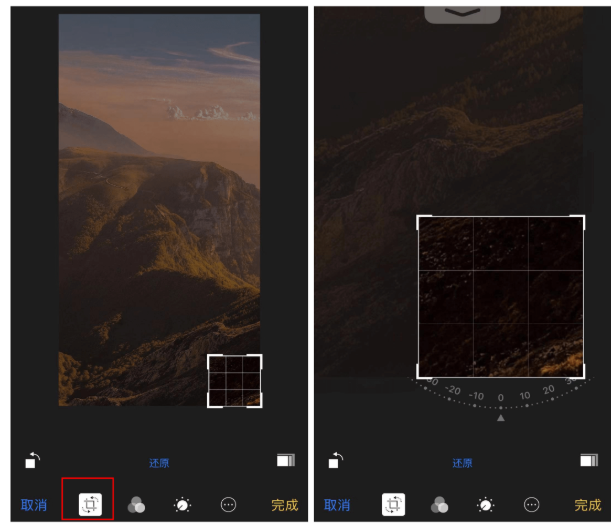 裁剪后的照片還可以被還原,下次查看時選擇“復原”即可: